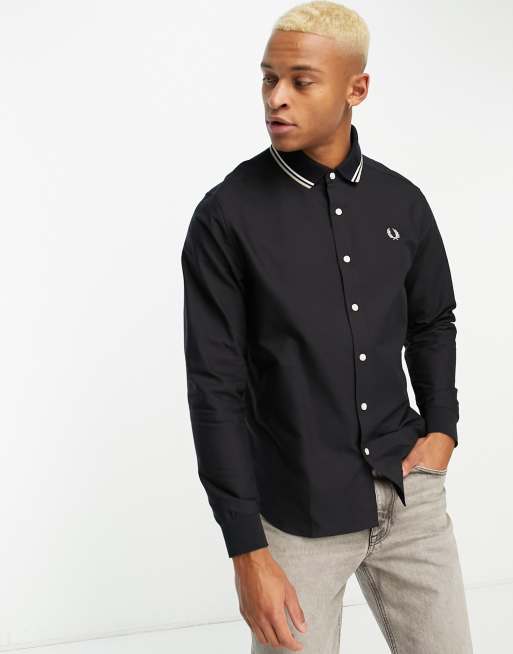 Fred Perry Camicia nera con colletto in maglia ASOS Very well made.