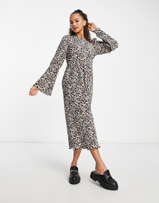 Monki long sleeve smock midi dress in leopard print Very well made.