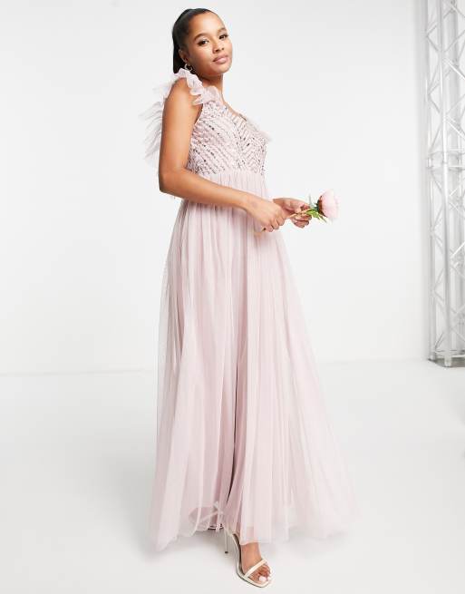 Frock and Frill Petite Bridesmaid floaty maxi dress in taupe Very well made.