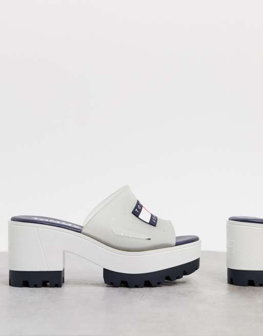 Tommy Hilfiger Leather Chain front Mule Loafers In White Very well made.