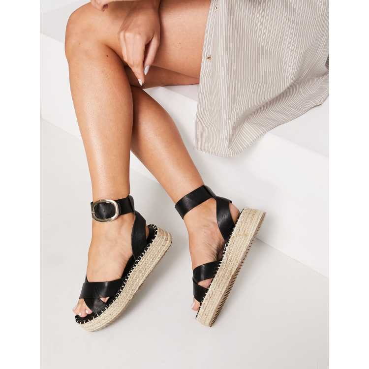 ASOS DESIGN Justice Sandales style espadrilles semelle plateforme plate Noir Very well made.