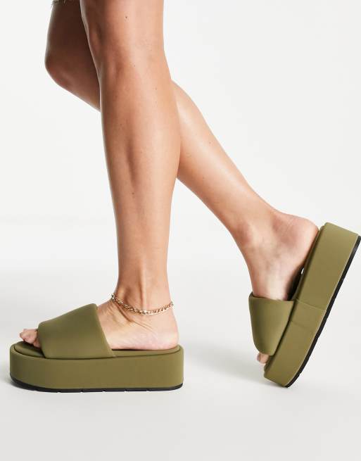 ASOS DESIGN Taya Sandales matelass es semelle plateforme Kaki Very well made.