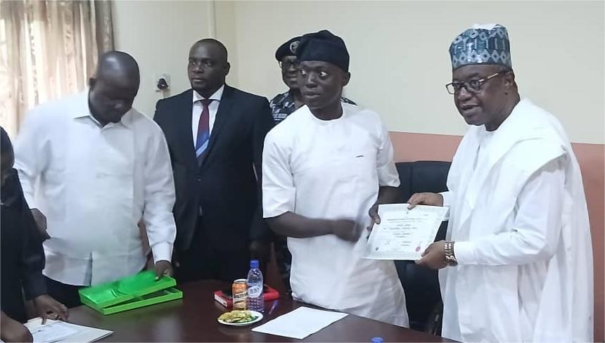 Today, the Independent National Electoral Commission (INEC) presented the certificate of return to Hon. Abner Shittu, the newly elected member for Karim I State Constituency. The ceremony took place at the INEC headquarters in Jalingo, Taraba State.