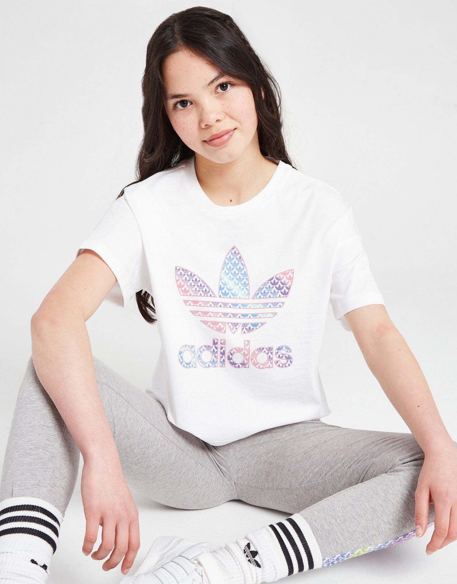 White adidas Originals Girls Monogram Infil Boxy T Shirt Junior Very well made.