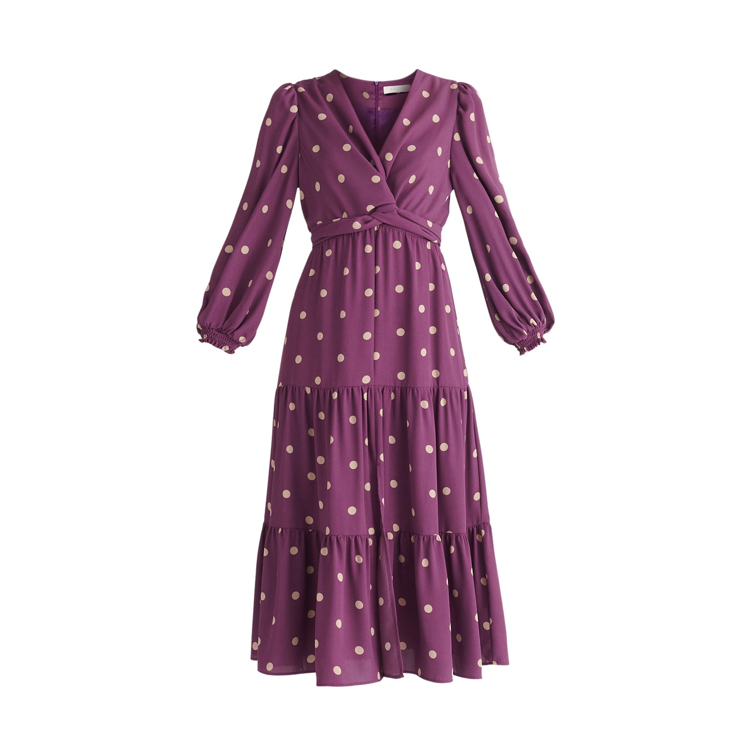 Tiered Hem Polka Dot Dress In Purple And Cream by PAISIE Very well made.