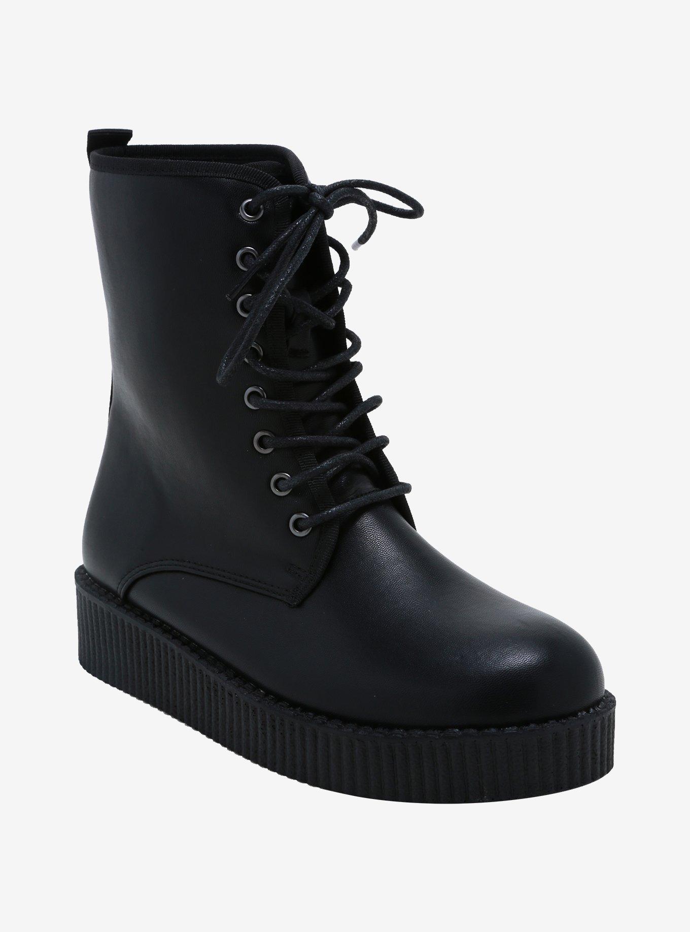 Divided HM Womens Size 38 Black Combat Boots Creeper Heel Lace Up Side Zipper Very well made.