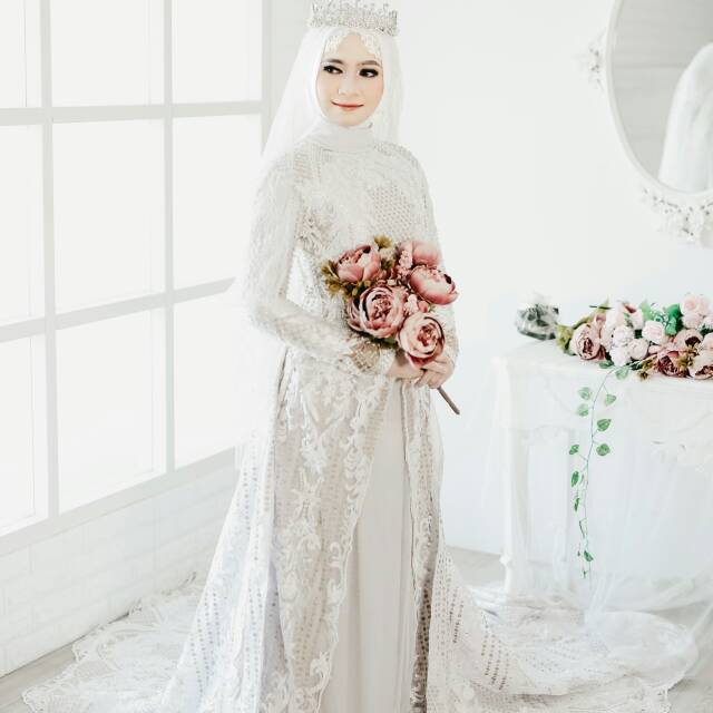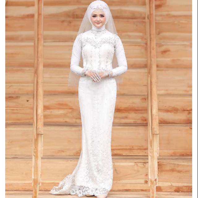 Jual dijual white dress wedding akad resepsi murah cocok untuk Very well made.