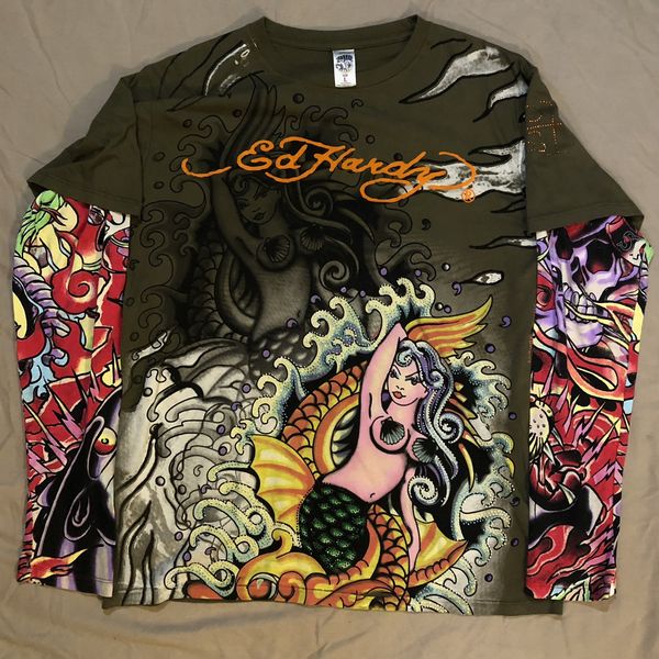 Ed Hardy Ed Hardy Bedazzled Tattoo Sleeve Shirt Grailed Very well made.