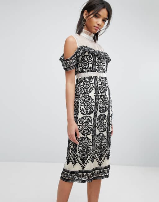 Rose Emerald Embroidered Bodycon Dress Very well made.