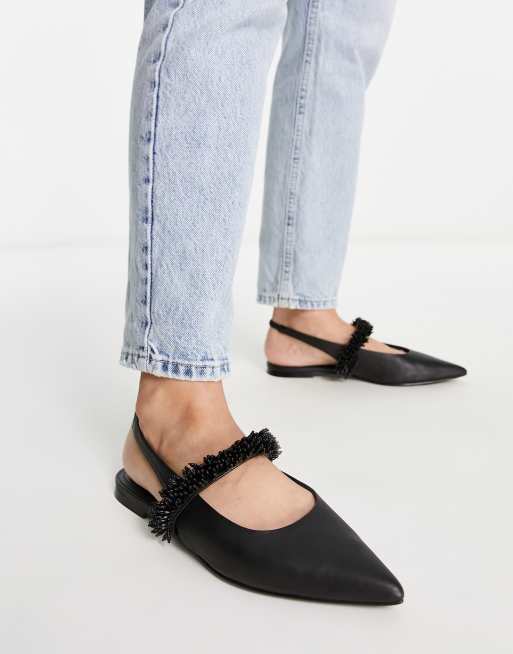 Black Point toe spazzolato leather slingback flats Prada Very well made.