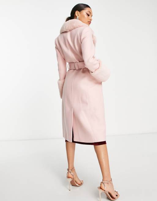 Forever New Petite faux fur collar coat with cuffs in pink Very well made.