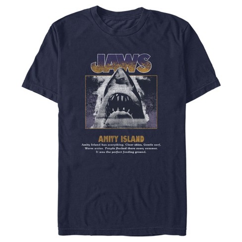 Men s Jaws Blue And Yellow Poster T shirt Navy Blue X Large Very well made.