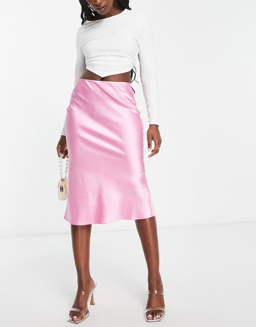 Miss Selfridge Jupe mi longue en satin coup e en biais Rose Very well made.