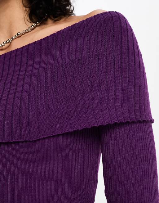 Daisy Street off shoulder fitted jumper in purple knit Very well made.