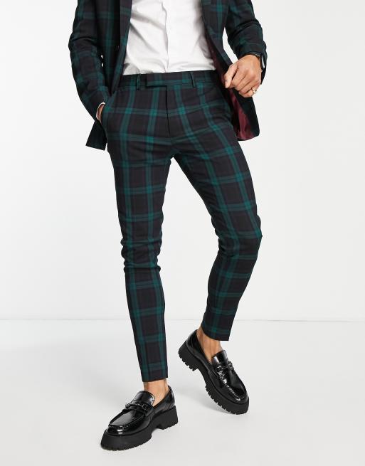 ASOS DESIGN super skinny suit trousers in dark green and black tartan Very well made.