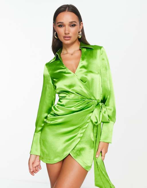 Topshop satin tie front mini shirt dress in green ASOS Very well made.