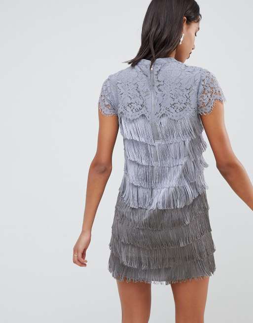 Oasis shift dress with fringe detail in grey ASOS Very well made.