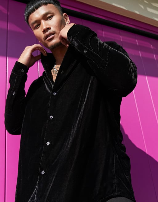 ASOS DESIGN oversized velvet shirt in black ASOS Black casual Very well made.