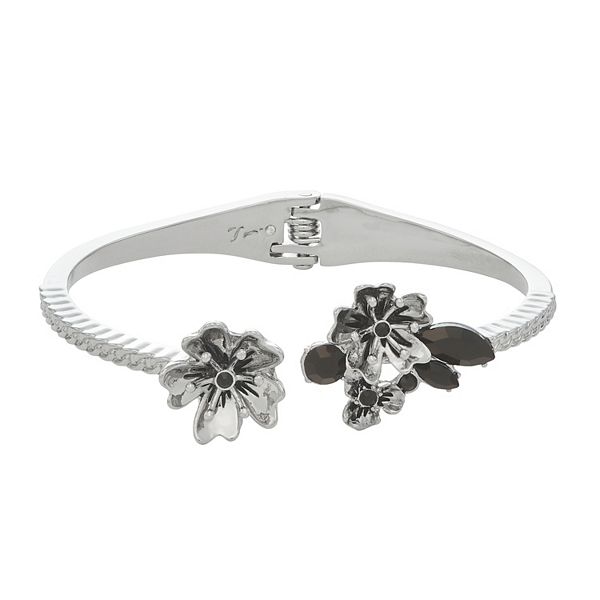 Simply Vera Vera Wang Silver Tone Black Crystal Flower Cuff Bracelet Very well made.