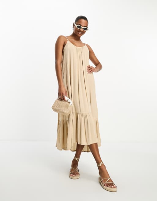 Vero Moda Petite tie shoulder beach maxi dress in cream Very well made.