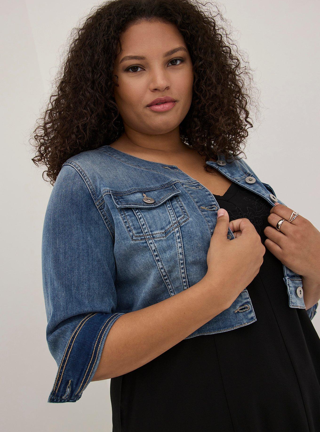 Plus Size Collarless Jacket Denim Medium Wash Torrid Very well made.