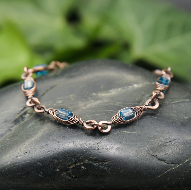 Herringbone Wire Weave Chain Bracelet with Aqua Folksy Very well made.
