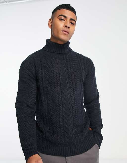 Jack Jones cable knit turtle neck sweater in navy Very well made.
