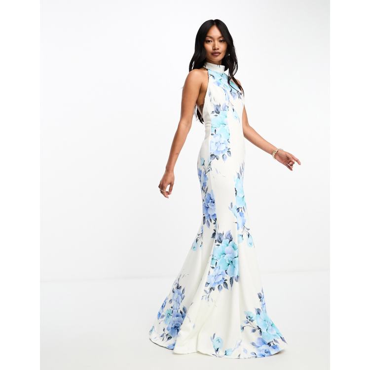 True Violet high neck maxi dress in white and blue floral Very well made.