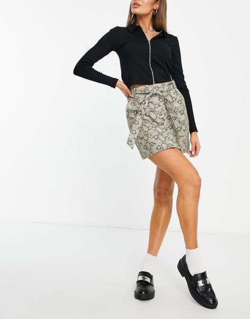 Topshop belted button through leather look skirt in snake print nude Very well made.