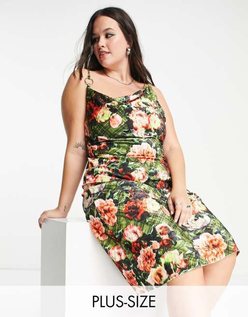 COLLUSION Plus cowl neck velvet floral printed midi dress in multi Very well made.
