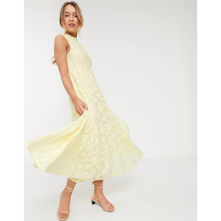 Warehouse sleeveless lace swing maxi dress in yellow ASOS Very well made.