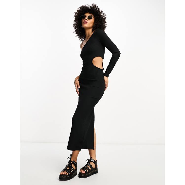 Bershka cut out asymmetric neckline maxi dress in black Very well made.