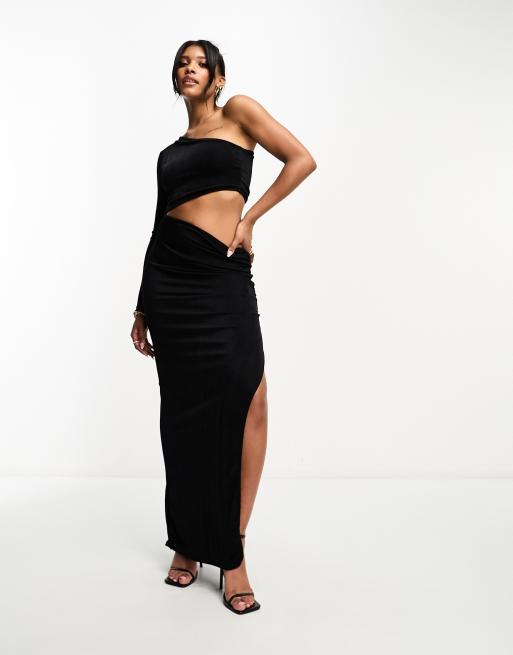 One Shoulder Cut Out Ruched Side Detail Split Leg Maxi Dress In Very well made.